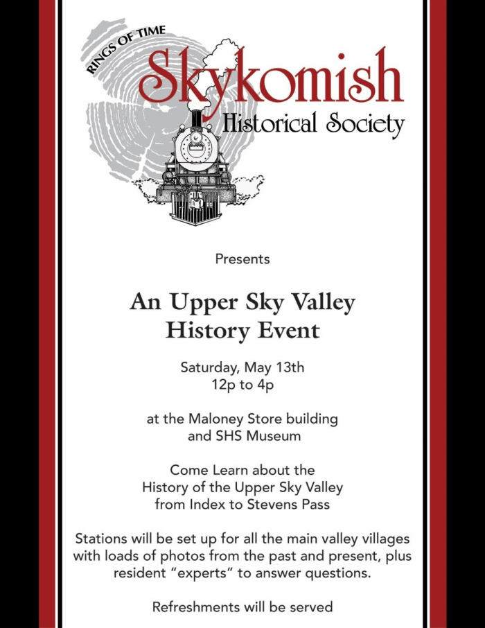 Upper Sky Event May 13th MSRitzman / May 6, 2017 May 13th just off US2 on Railroad Ave Skykomish WA Share this:Tweet Email a link to a friend (Opens in new window) Email Print (Opens in new window) Print Like Loading...