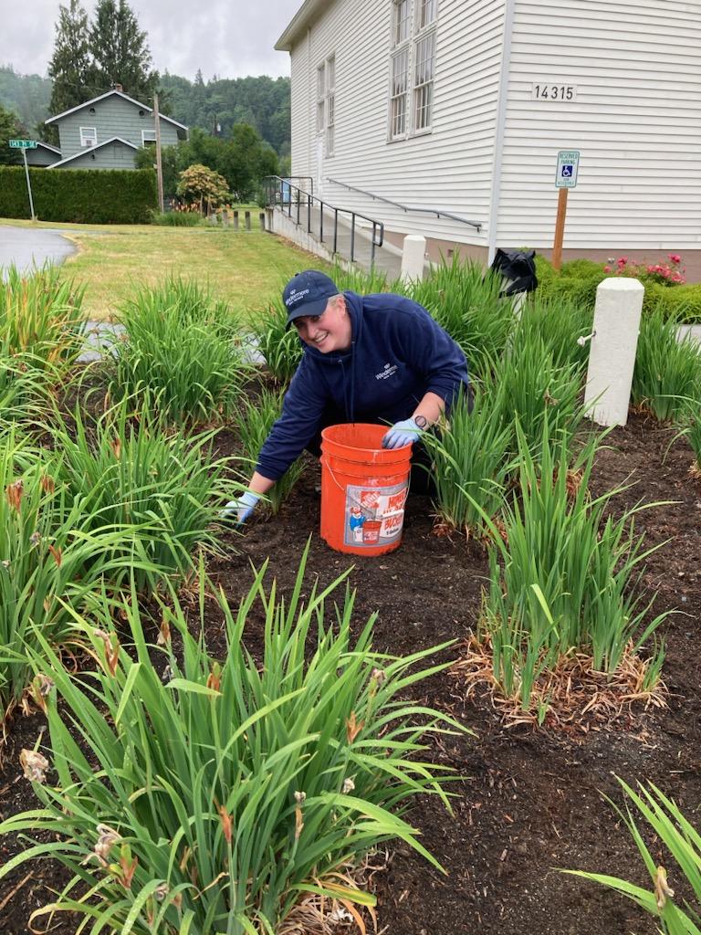 The Startup Event Center Park was chosen as Windermere Real Estate-Monroe’s community service project. The team spent today working on the park. They spread bark, weeded, cut out the metal cables between the concrete bollards and hauled that to the recycle under the direction of project manager, Pete Gott!