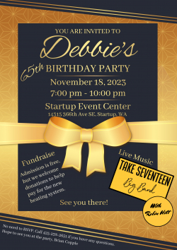 - NOVEMBER 18, Saturday 7-10pm Fundraiser with Live Big Band at Startup Event Center